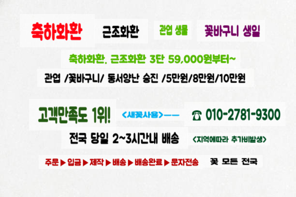 | 울산하늘공원 근조화환 울산 화환 3단 조화 6만원 울산 북구 연암동 꽃집 당일 배송합니다 (0) | 2025.11.13 |