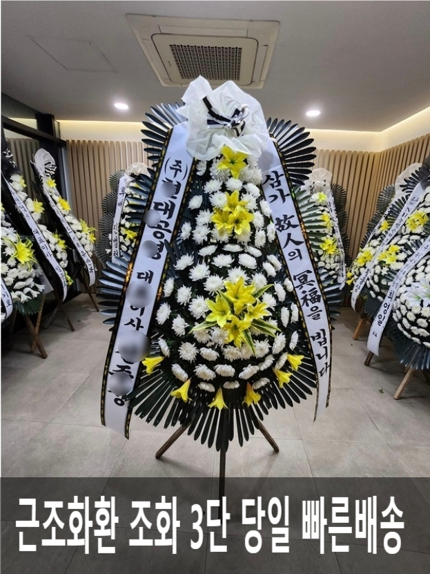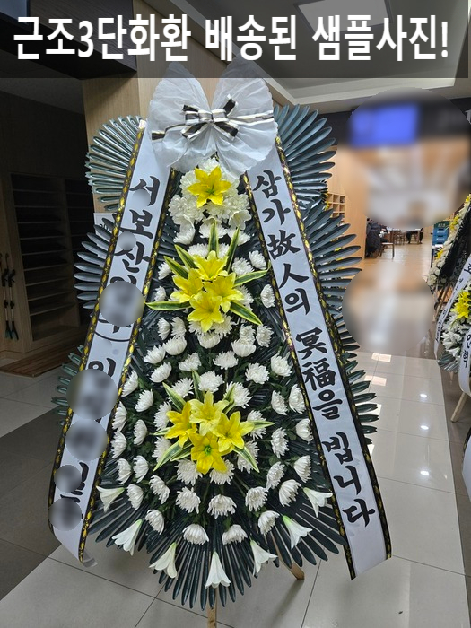 위 사진은 근조3단화환 샘플입니다.