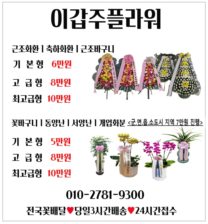 기본형 6만원부터!<군, 면. 읍. 소도시 지역은 3단화환 7만원>